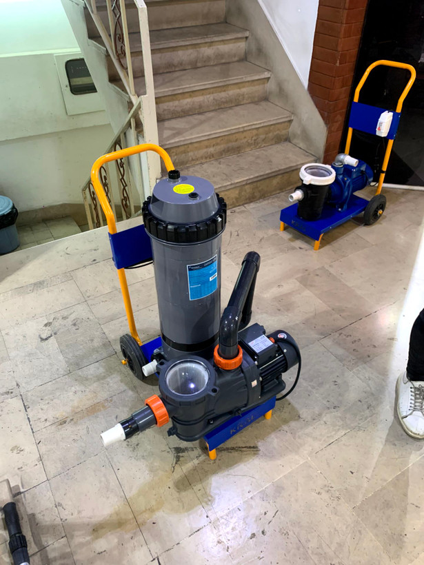 یکی از مهمترین تجهیزات در استخرها سیستم فیلتراسیون بوده که شامل پمپ استخری دارای استرینر و فیلتر تصفیه استخری میشود. در برخی از موارد استخری با کاربری غیر از شنا وجود داشته که نیاز به تغییر کاربری به استخر شنا دارد. در این موارد خاص که لوله کشی بابت تصفیه خانه استخر پیش بینی نشده است میتوان از گاری تصفیه استخری پرتابل استفاده نمود. گاری تصفیه استخری از یک پمپ تصفیه استخر همراه با فیلتر کارتریجی استفاده میشود. استخ